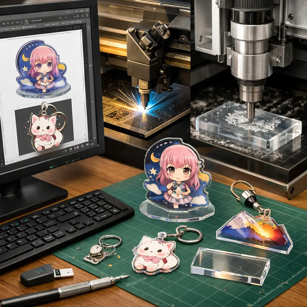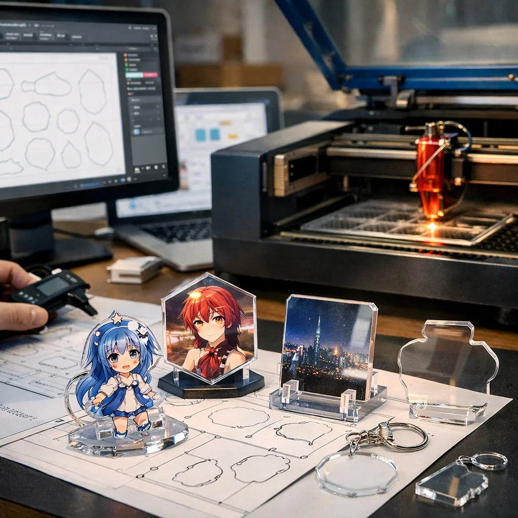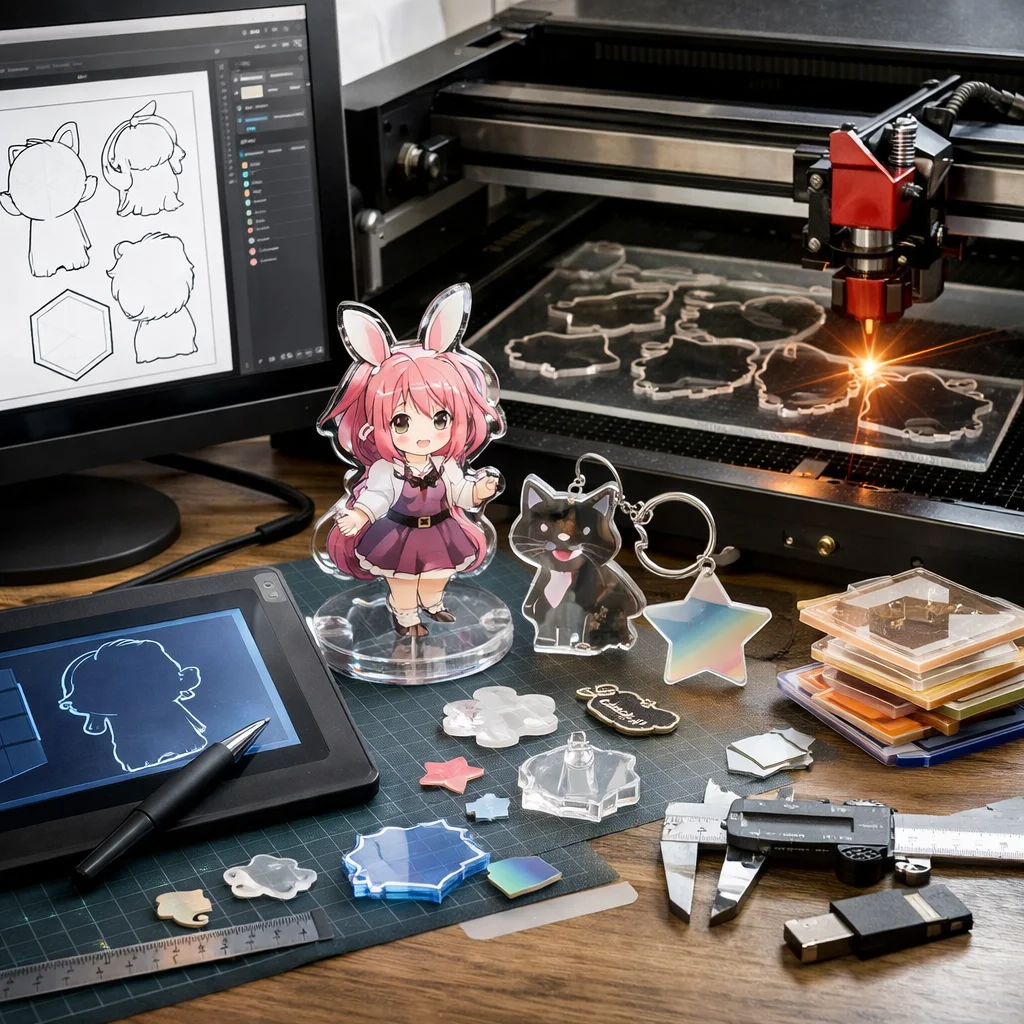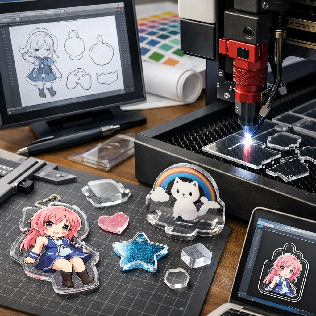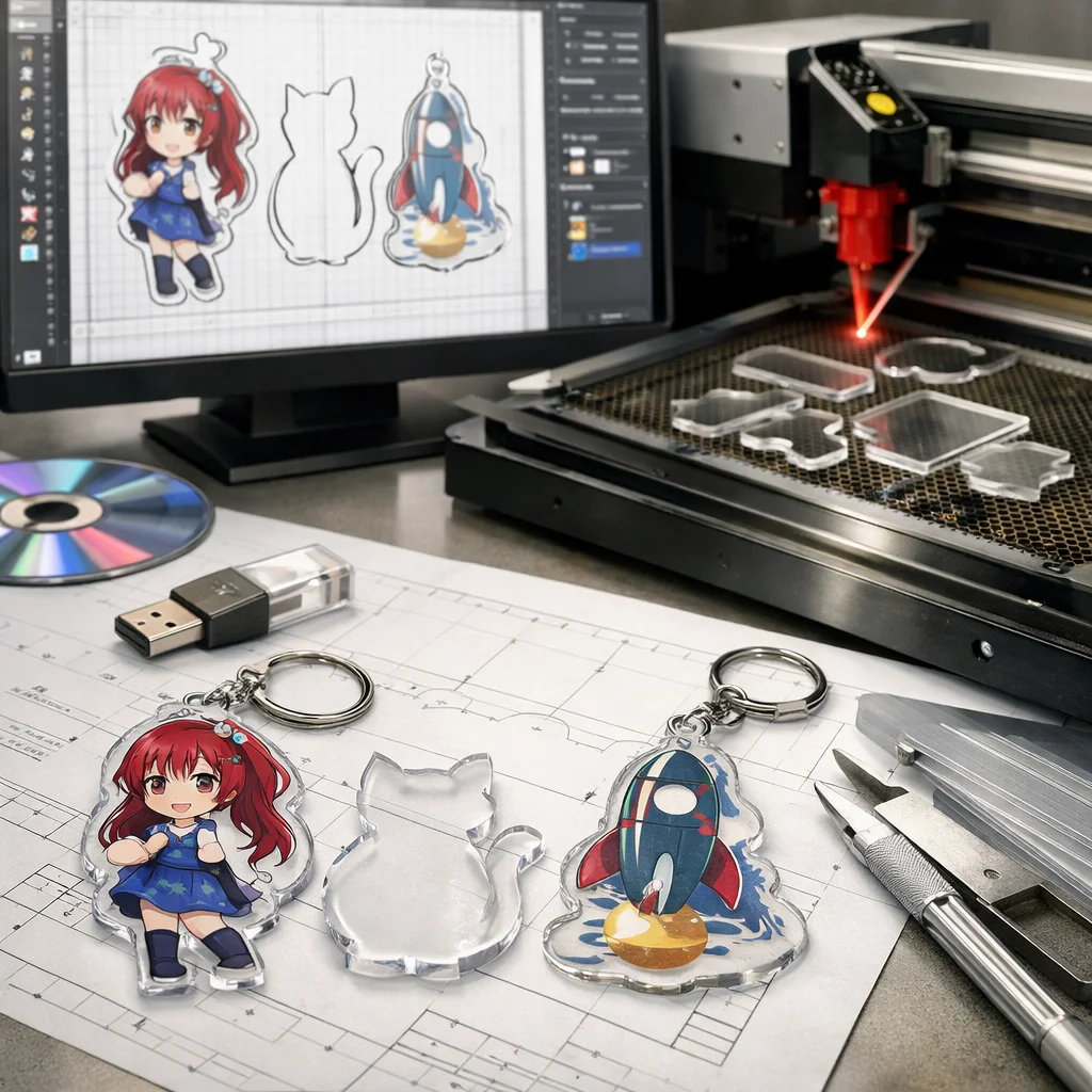 アクリルグッズの加工では、カットデータ設計が商品の多様なバリエーションを生み出し、制作・販売の両面において重要です。効率的な設計が原価削減や市場のトレンドを反映し、魅力的な製品を提供します。