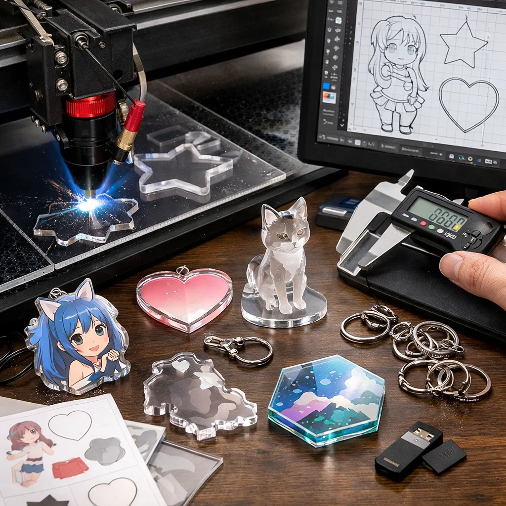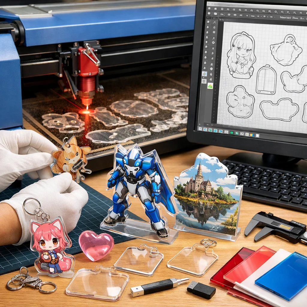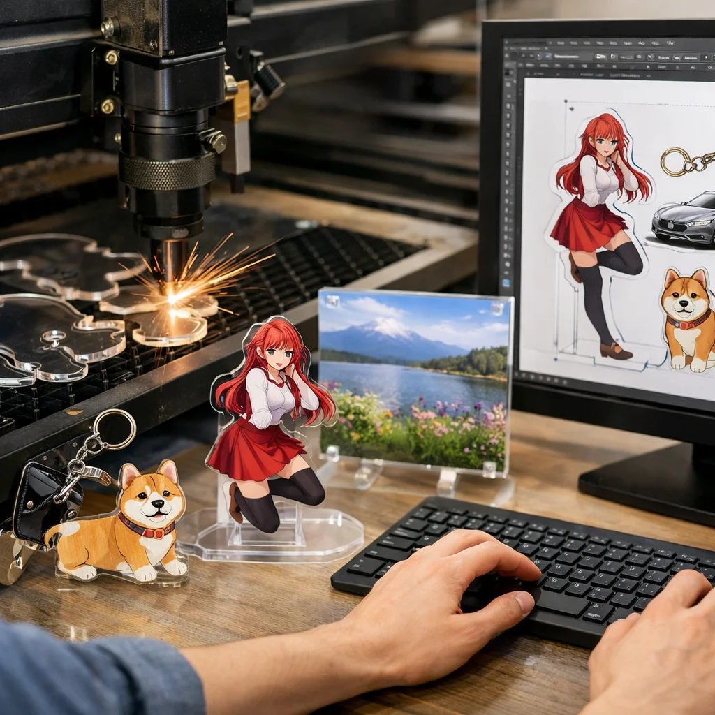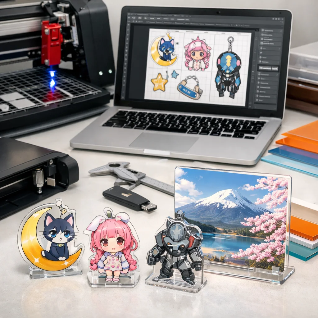 アクリルグッズの製造におけるカットデータは、これほど多くの要素を内包していることを理解し、それらを駆使することで、魅力的な作品を生み出すことができるでしょう。初めての方でもこの知識を活かして、ぜひ自分だけのアクリルグッズを作り上げてみてください。