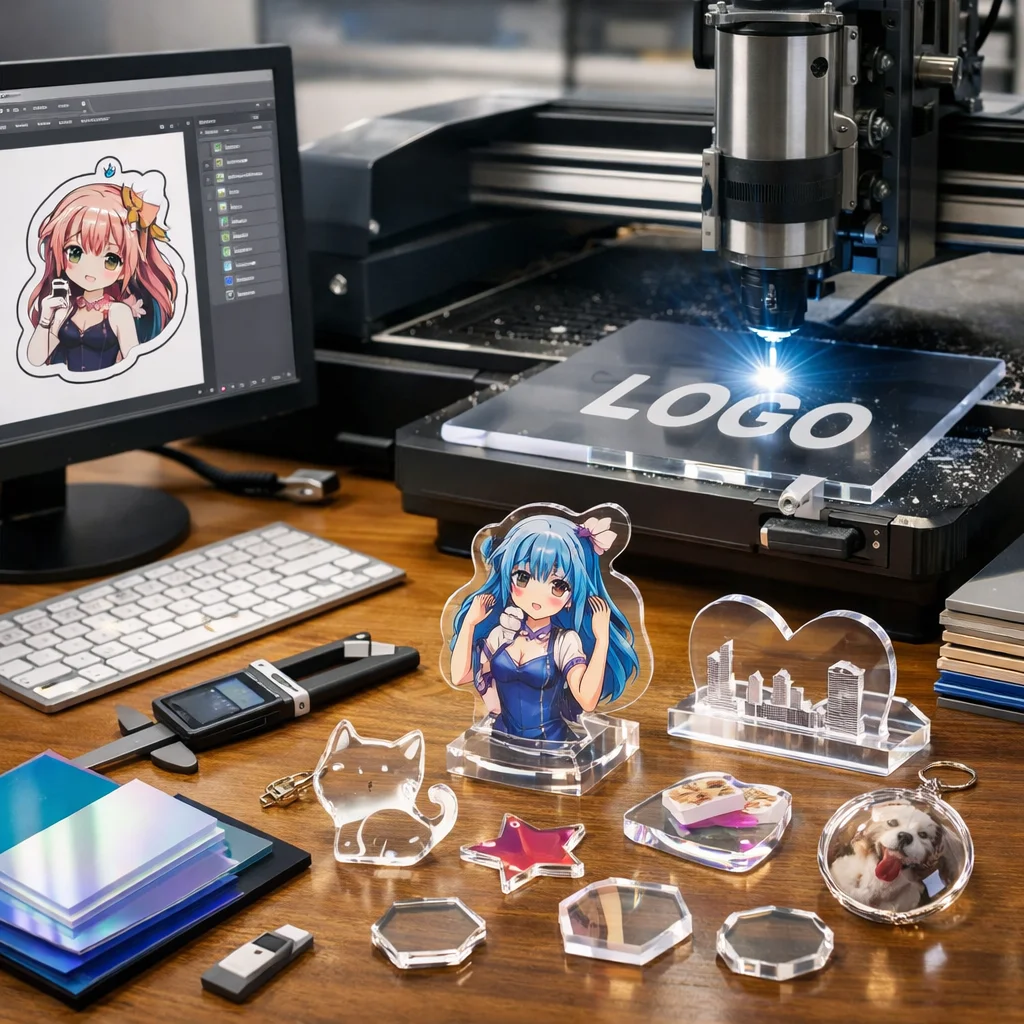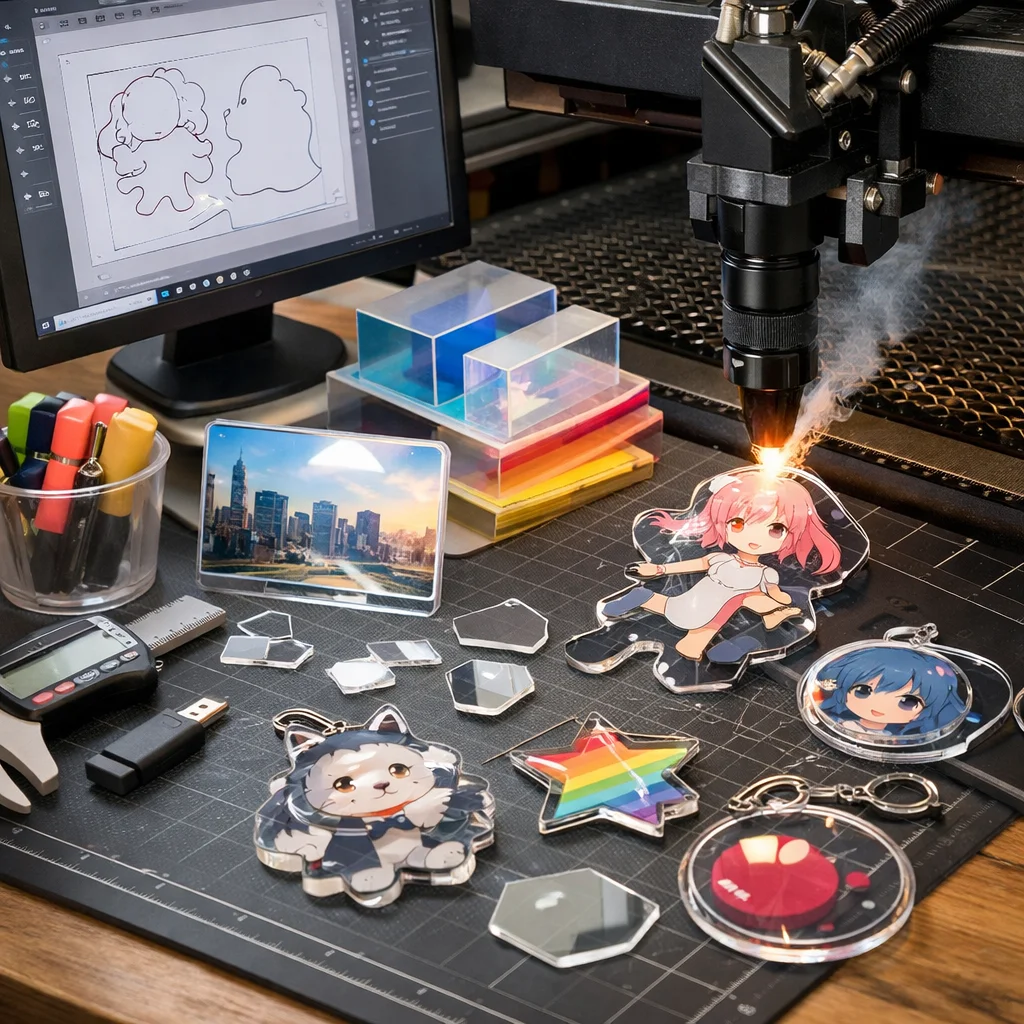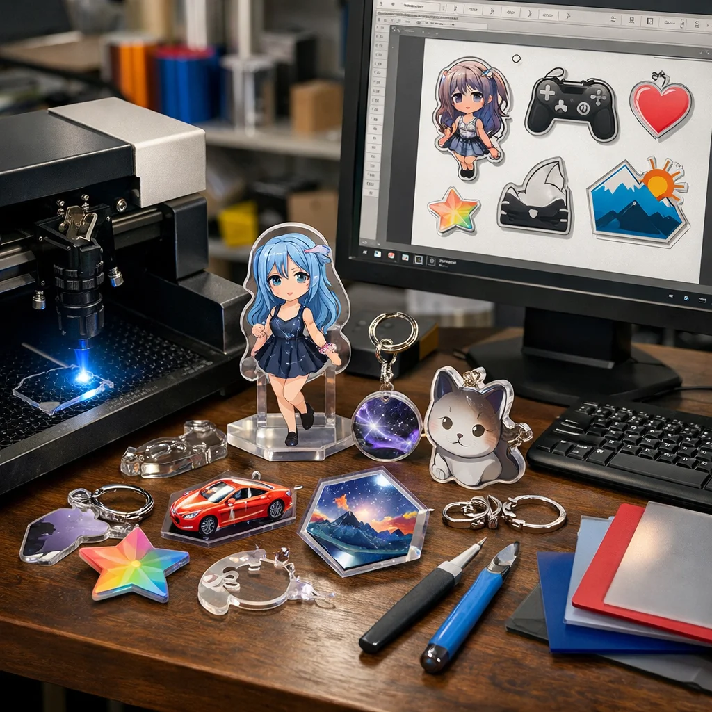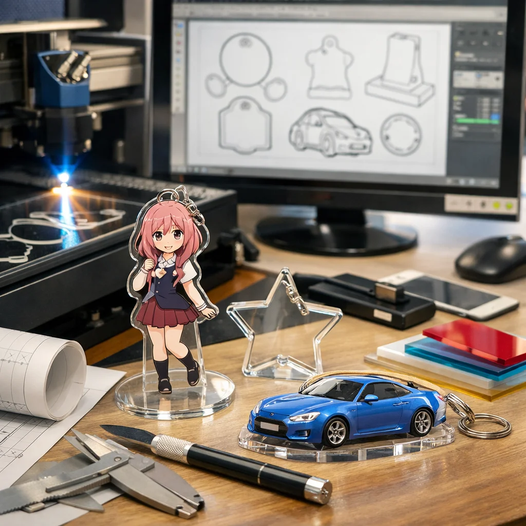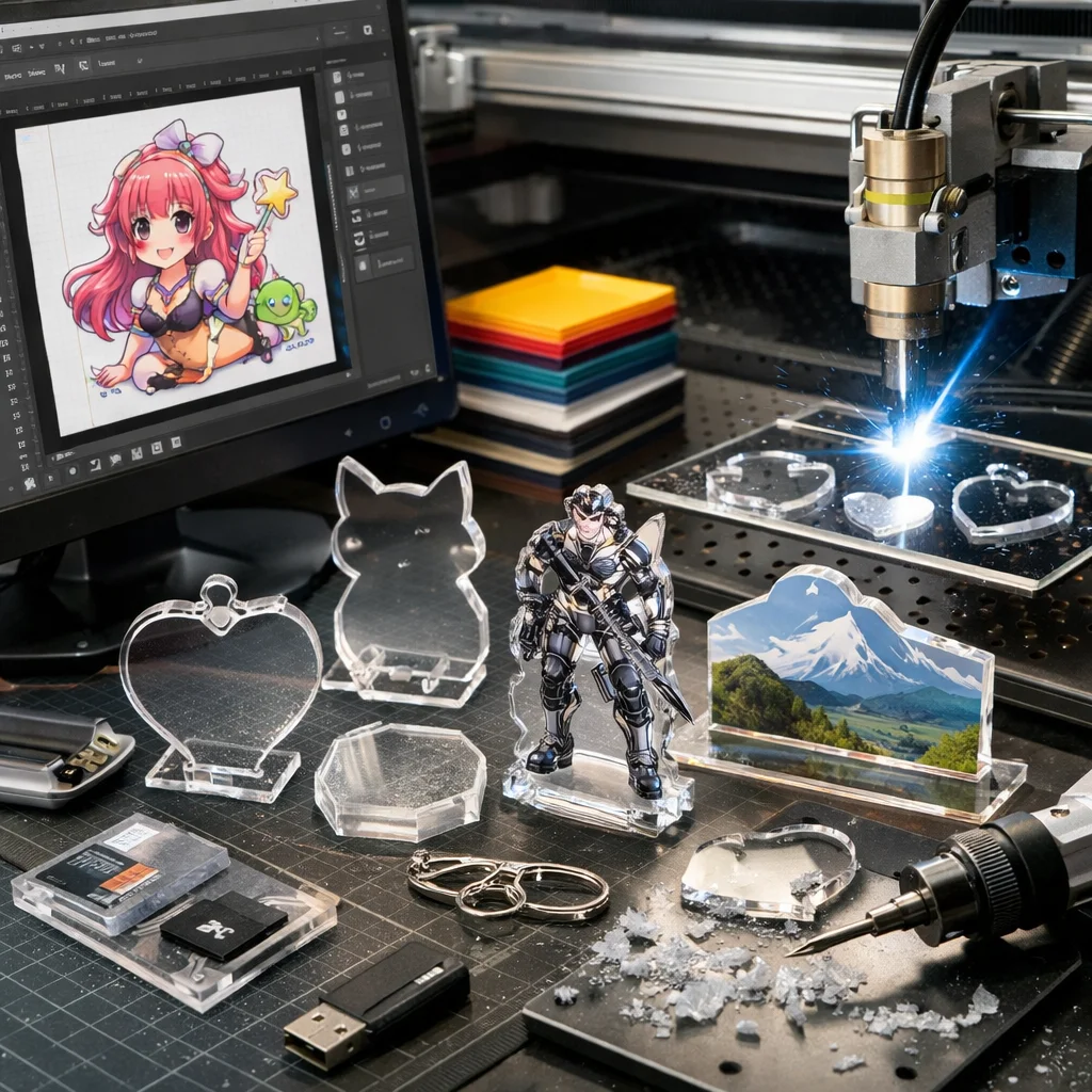 アクリルグッズは、その透明感と軽量さから、多様なデザインや機能を持つ製品が多く存在します。アクリルグッズの加工やカット、データ作成において、以下の新たな商品アイデアが考えられます。