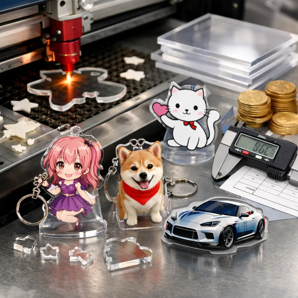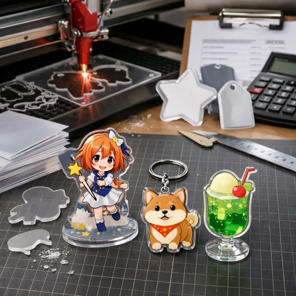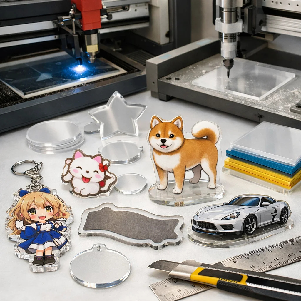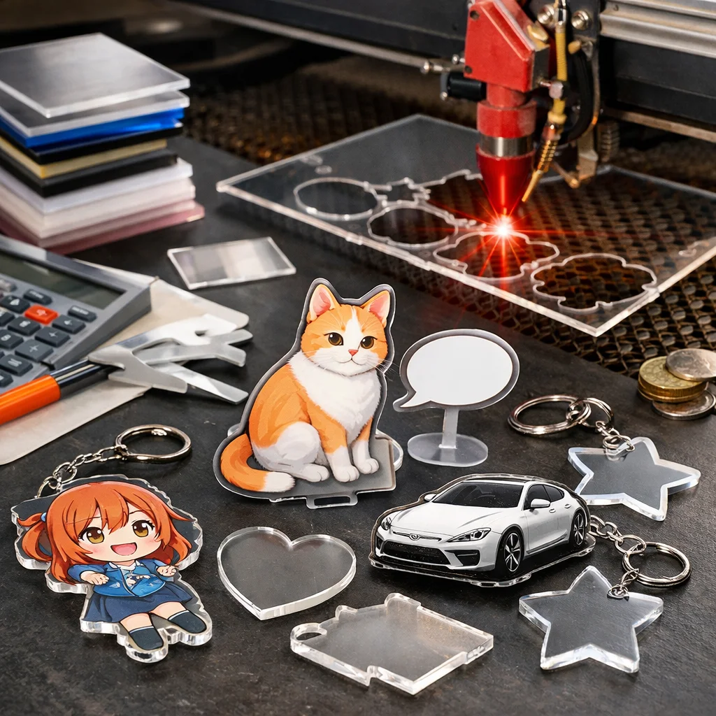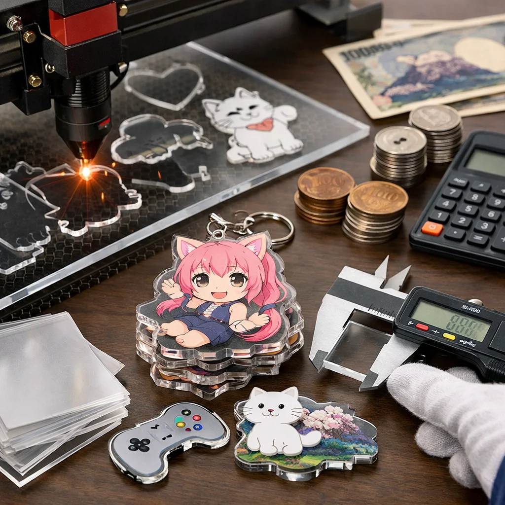 アクリルグッズの加工や型抜きの料金は、材料費、加工費、印刷費など複数の要素に分かれます。数量が増えると単価が下がるため、特に法人ノベルティなど大量発注が有利です。事前に見積もりを取ることが重要です。